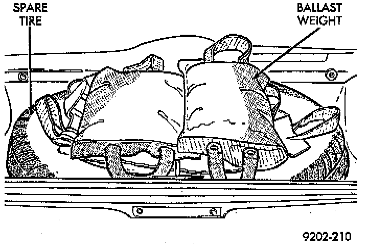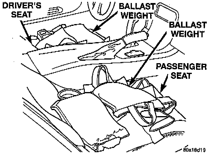 NOTE: The approximate total weight needed to lower the vehicle to its design height is 400 pounds. The weight distribution in the vehicle is approximately 330 in the passenger compartment (165 pounds per seat) and 70 pounds in the trunk. If the spare tire is not in the trunk, approximately 40 additional pounds will need to be placed in the trunk to compensate for the tire.