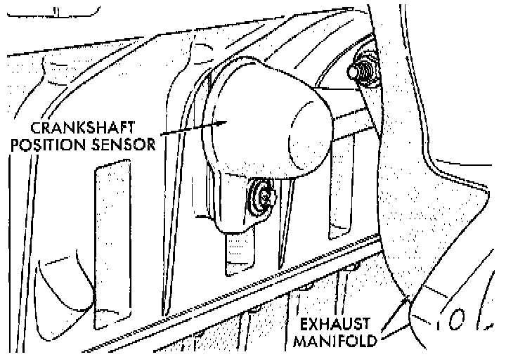 A heat shield covers the crankshaft position sensor. The sensor is located in the middle of the right side of the cylinder block, just above the oil pan.
