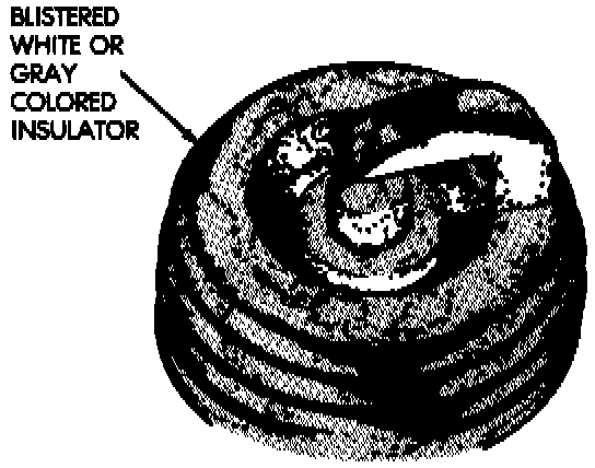 Overheating is indicated by a white or gray center electrode insulator that also appears blistered. The increase in electrode gap will be considerably in excess of 0.001 in per 1000 miles of operation. This suggests that a plug with a cooler heat range rating should be used. Over advanced ignition timing, detonation and cooling system malfunctions also can cause spark plug overheating.