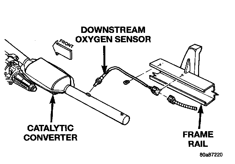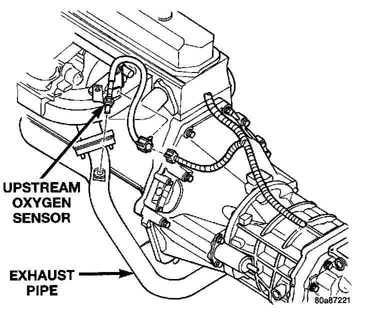 To perform a complete test of the O2S sensors and their circuitry, refer to the DRB scan tool and appropriate Powertrain Diagnostics Procedures. To test the O2S sensors only, refer to the following:Upstream Oxygen Sensor Location: