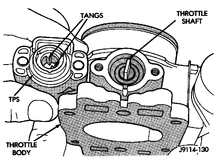 The throttle shaft end of the throttle body slides into a socket in the TPS. The TPS must be installed so that it can be rotated a few degrees. (If the sensor will not rotate, install the sensor with the throttle shaft on the other side of the socket tangs). The TPS will be under slight tension when rotated.