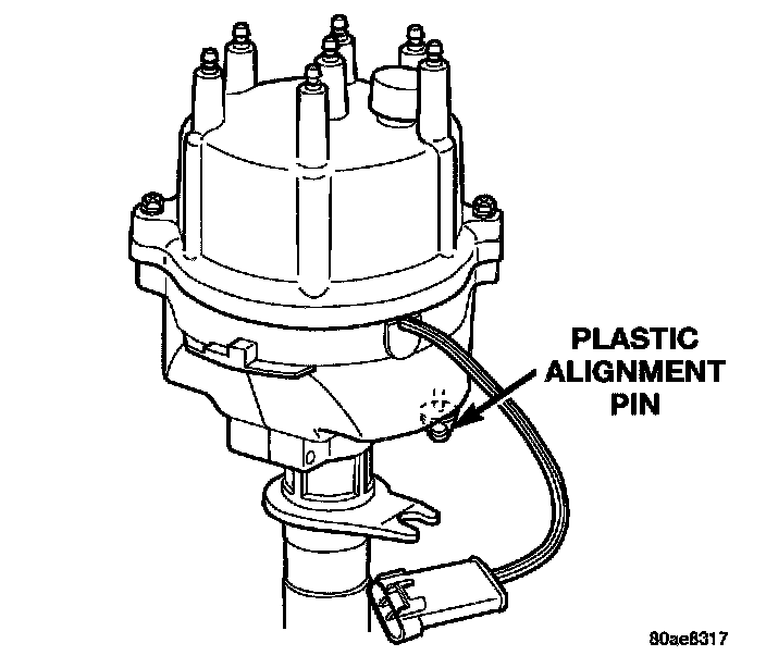The distributor contains an internal oil seal that prevents oil from entering the distributor housing. The seal is not serviceable.Plastic Alignment Pin:
