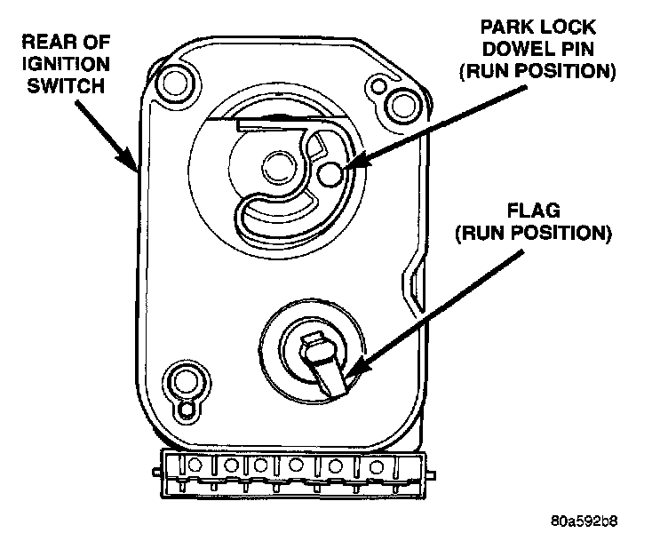 7. Place ignition switch in LOCK position. The switch is in the LOCK position when column lock flag is parallel to ignition switch terminals.