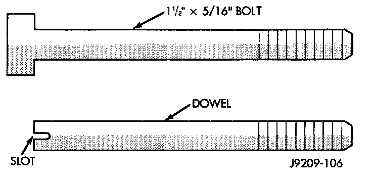 1. Fabricate 4 alignment dowels from 5/16 x 1 1/2 inch bolts. Cut the head off the bolts and cut a slot into the top of the dowel. This will allow easier installation and removal with a screwdriver.