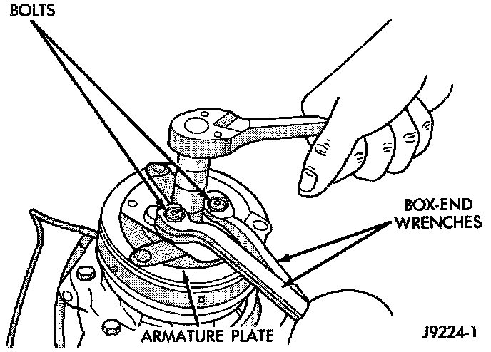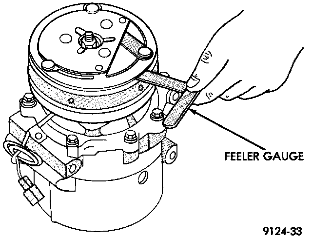 Examine the friction surfaces of the clutch pulley and the front plate for wear. The pulley and front plate should be replaced if there is excessive wear or scoring.