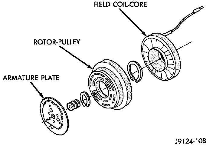 10. Note the alignment of the clutch field coil assembly on the compressor before removing it for correct reinstallation.