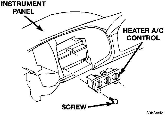 5. Remove the three screws that secure the heater-A/C control to the instrument panel.