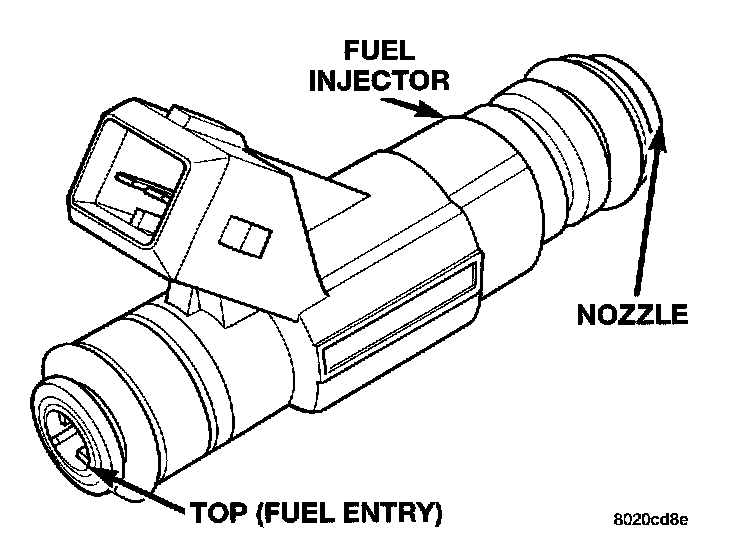 The nozzle (outlet) ends of the injectors are positioned into openings in the intake manifold just above the intake valve ports of the cylinder head. The engine wiring harness connector for each fuel injector is equipped with an attached numerical tag (INJ 1, INJ 2 etc.). This is used to identify each fuel injector.