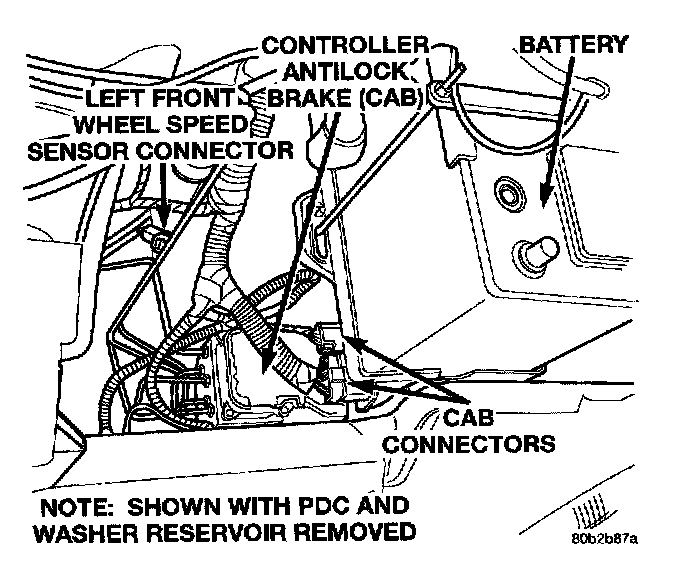 Left Front Wheel Speed Sensor Connector, Controller Antilock Brake (CAB), Battery, CAB Connectors,:
