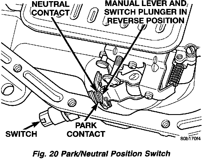 1. Move shift lever to Park and Neutral positions. Verify that switch operating lever fingers are centered in switch opening in case.