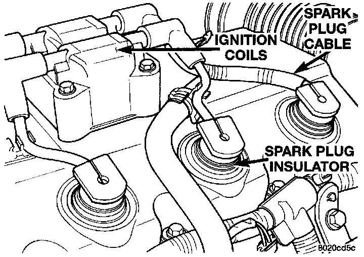2. Transfer spark plug cables to new coil pack. The coil pack towers are numbered with the cylinder identification. Be sure the ignition cables snap onto the towers.