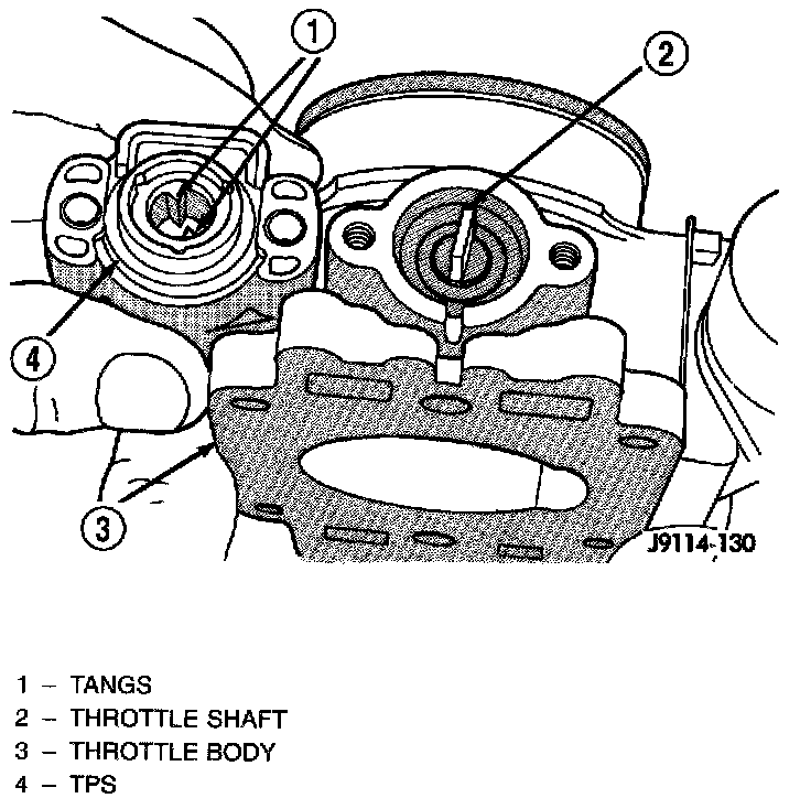 The throttle shaft end of the throttle body slides into a socket in the TPS. The TPS must be installed so that it can be rotated a few degrees. (If the sensor will not rotate, install the sensor with the throttle shaft on the other side of the socket tangs).