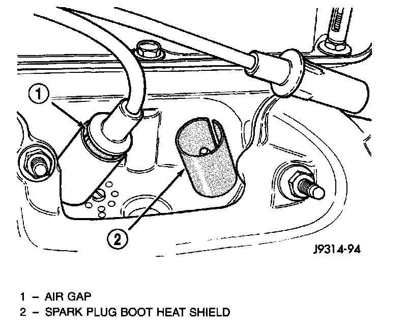 If removal of the heat shield(s) is necessary,remove the spark plug cable and compress the sides of shield for removal. Each shield is slotted to allow for compression and removal. To install the shields, align shield to machined opening in cylinder head and tap into place with a block of wood.