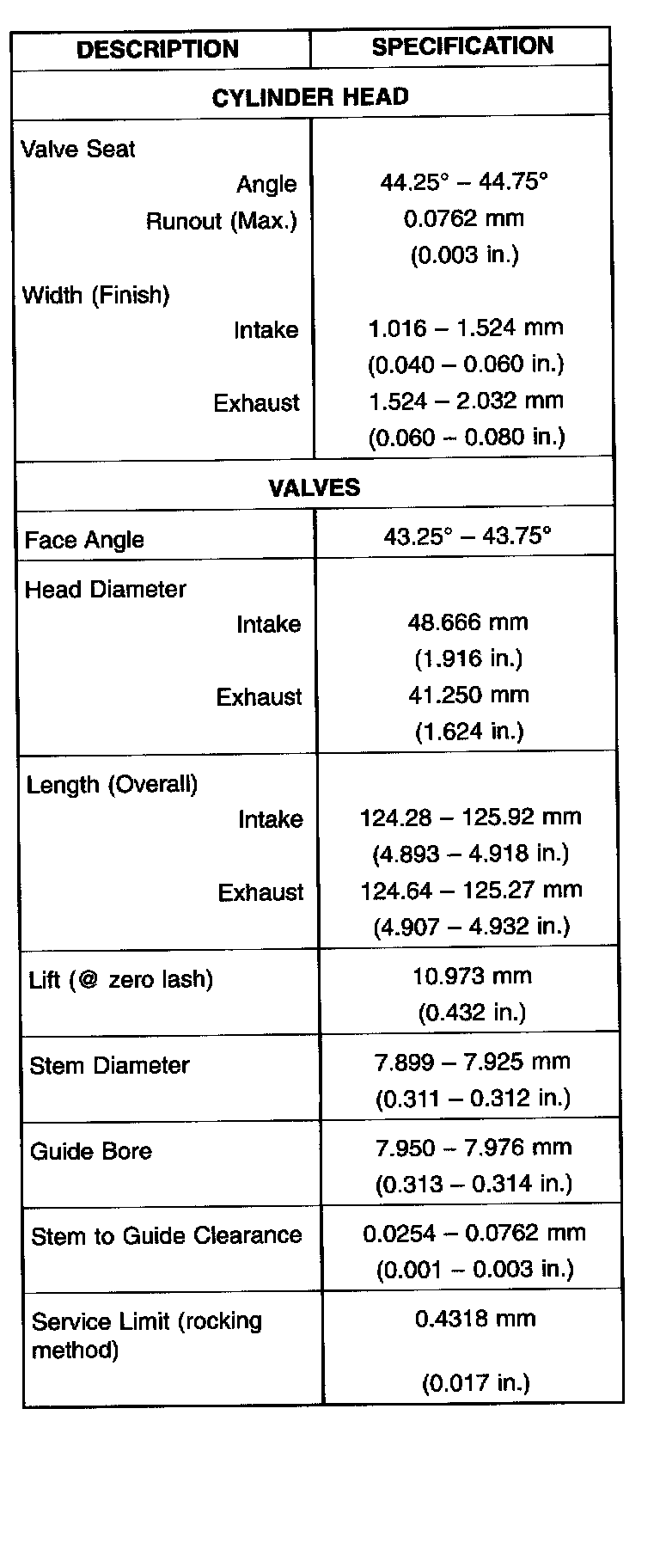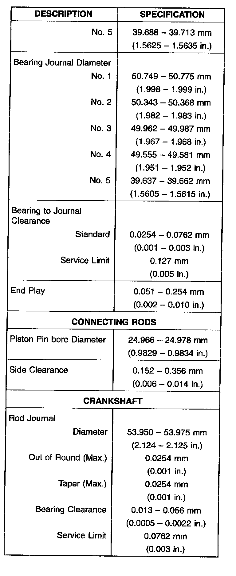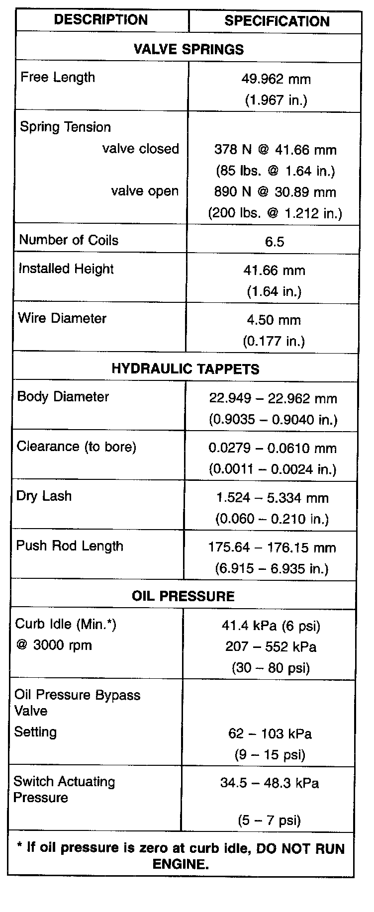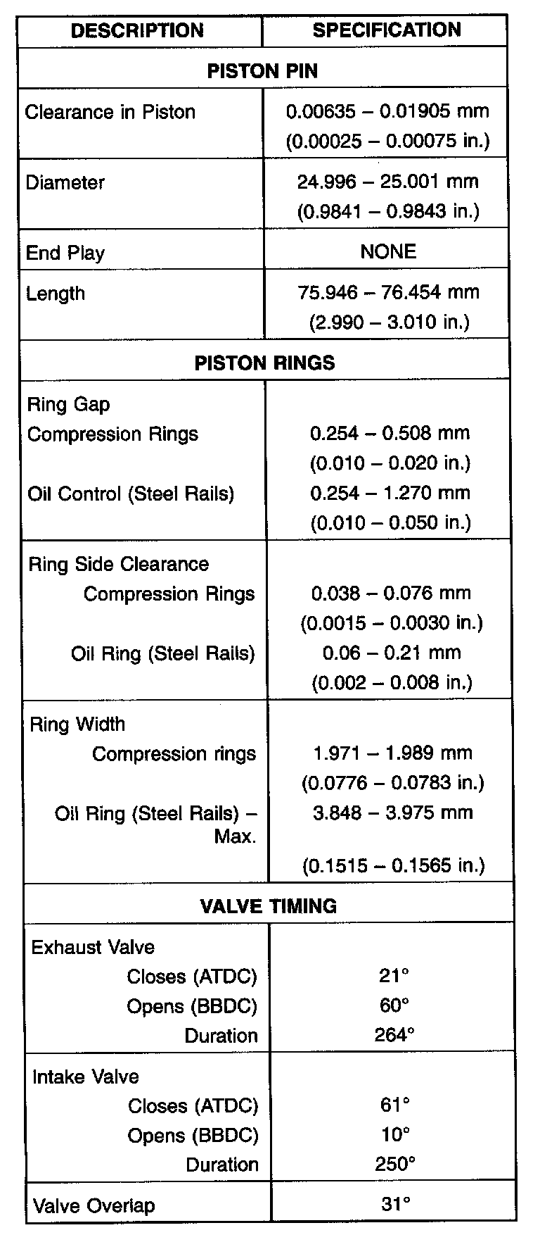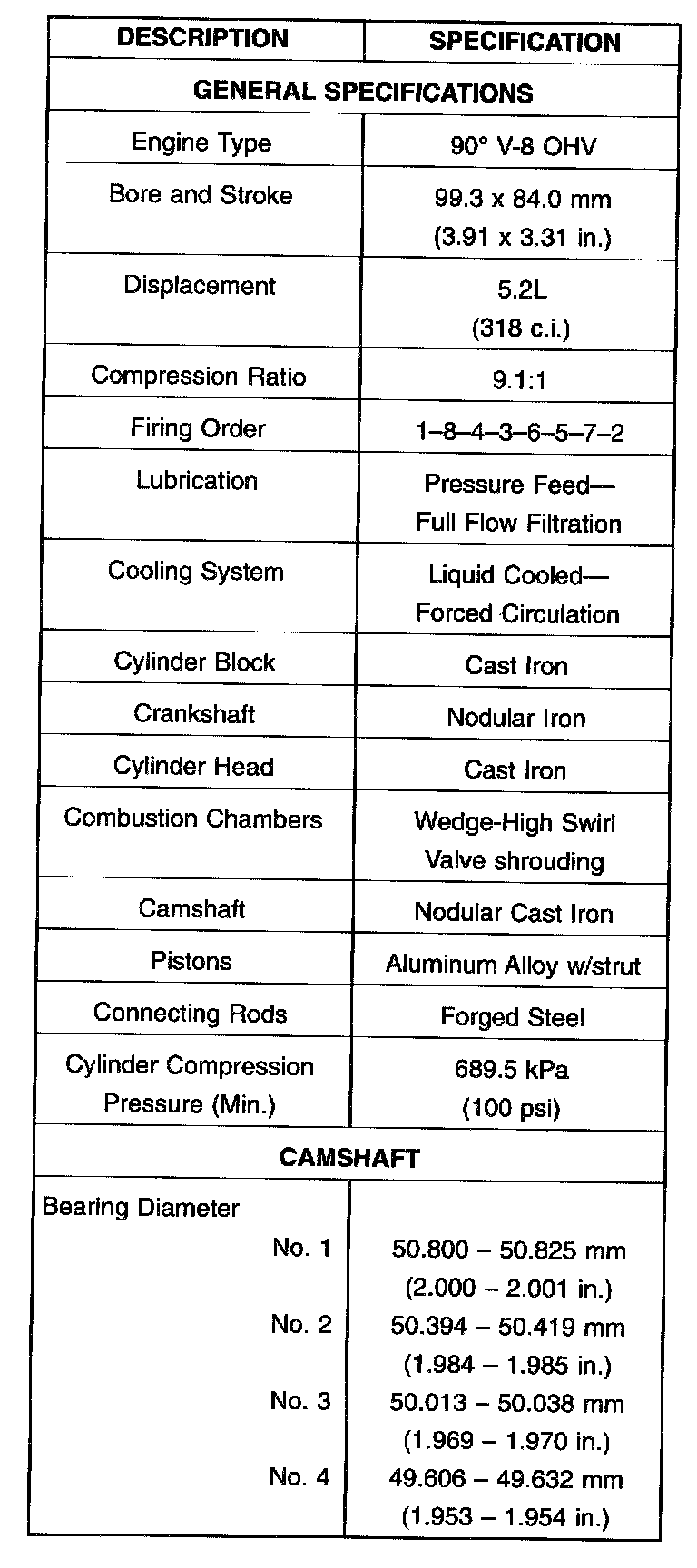 Engine Specifications