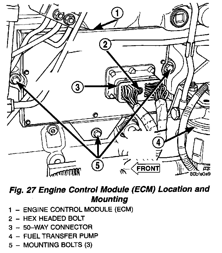 Fig. 27 Engine Control Module (ECM) Location And Mounting: