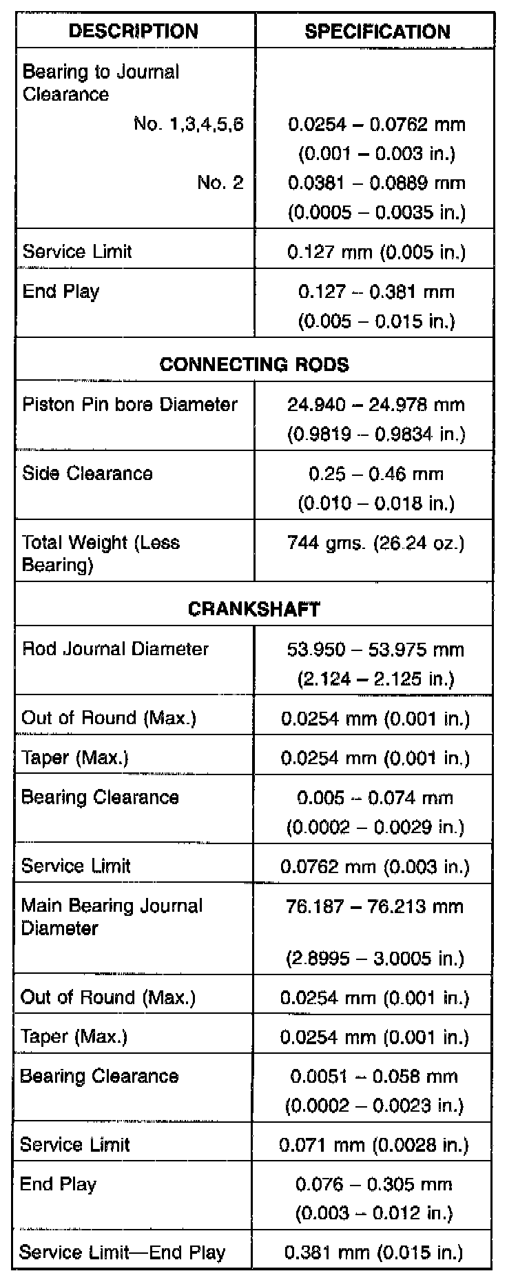 Engine Specifications