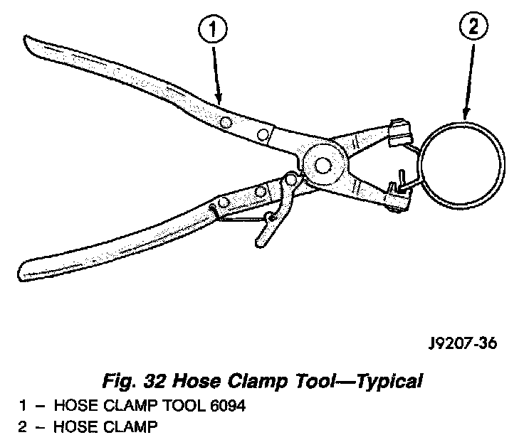 WARNING: CONSTANT TENSION HOSE CLAMPS ARE USED ON MOST COOLING SYSTEM HOSES. WHEN REMOVING OR INSTALLING, USE ONLY TOOLS DESIGNED FOR SERVICING THIS TYPE OF CLAMP, SUCH AS SPECIAL CLAMP TOOL (NUMBER 6094). SNAP-ON CLAMP TOOL (NUMBER HPC-20) MAY BE USED FOR LARGER CLAMPS. ALWAYS WEAR SAFETY GLASSES WHEN SERVICING CONSTANT TENSION CLAMPS.