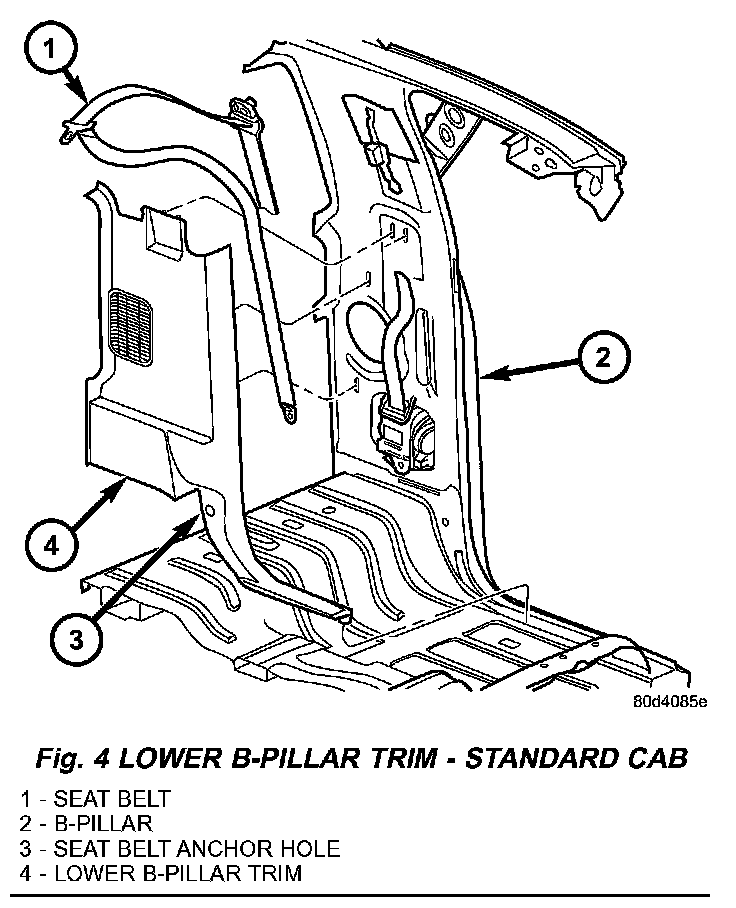2. Using a trim stick C-4755 or equivalent, remove the lower b-pillar trim. (Fig. 4)