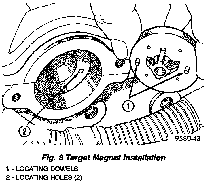 The target magnet has locating dowels that fit into machined locating holes in the end of the camshaft.