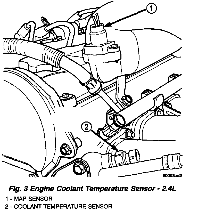 threads into the top of the thermostat housing. New sensors have sealant applied to the threads.