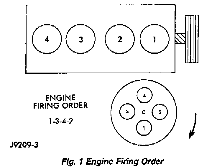 The cylinders are numbered 1 through 4 from front to rear. The firing is 1-3-4-2 (Fig.1).