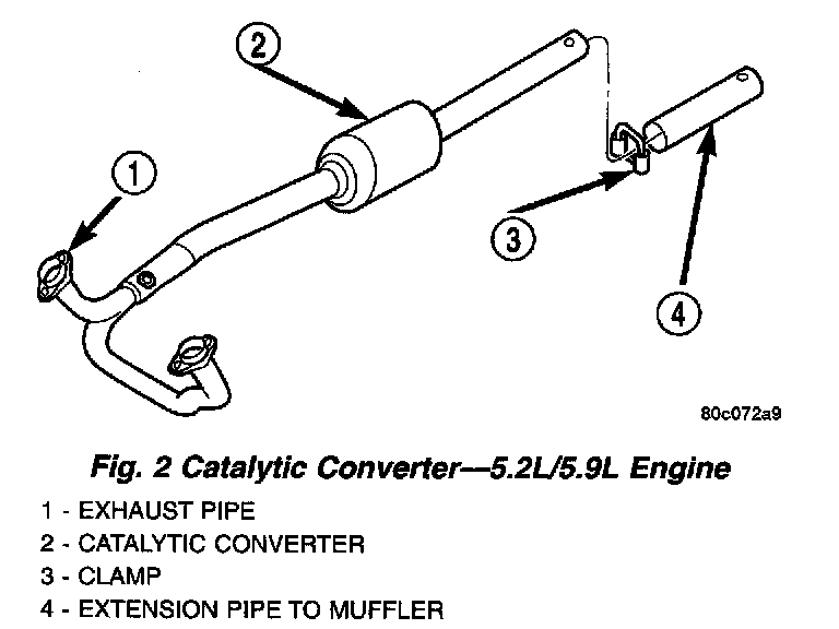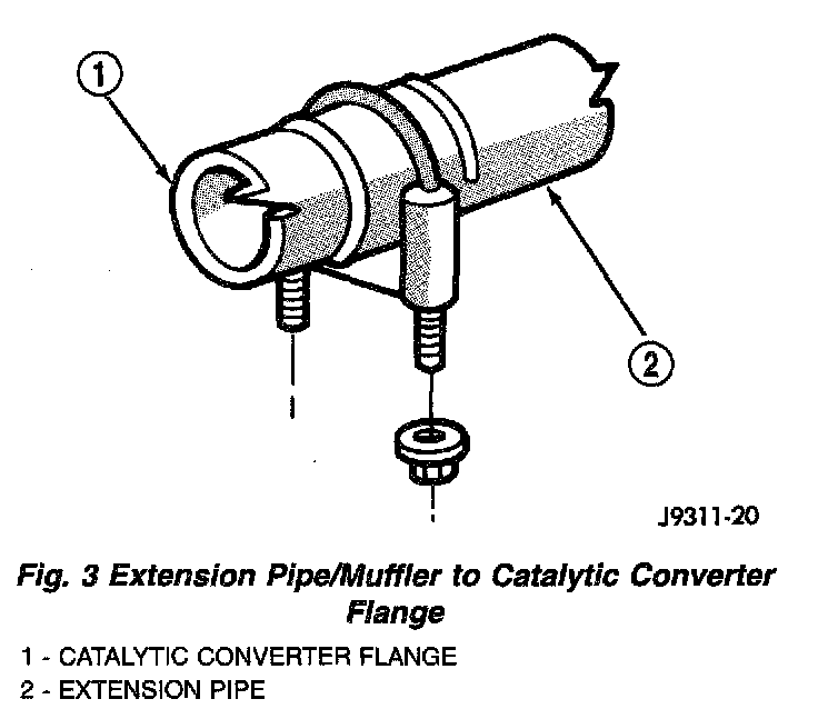 4. Remove the clamp holding the catalytic converter flange to the muffler or extension pipe .
