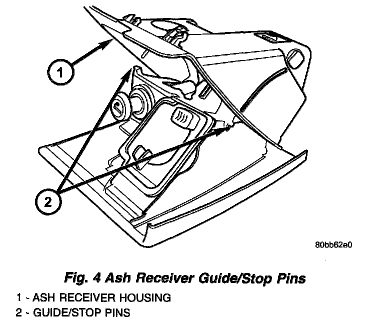 The push/push latch lever of the ash receiver and housing unit used in this vehicle is serviced individually. Following are the procedures for assembling this component to the ash receiver and housing unit.