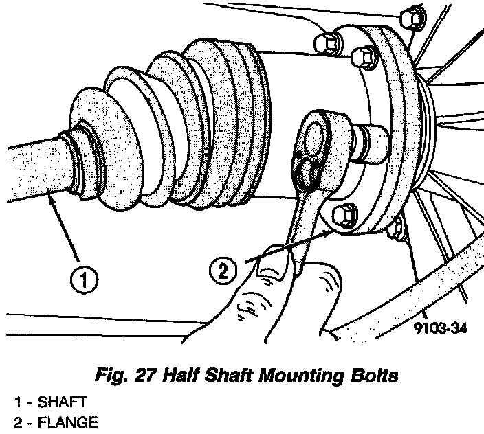 5. Install halfshafts to differential output flanges and torque bolts (Fig. 27) to 61 Nm (45 ft. lbs.).