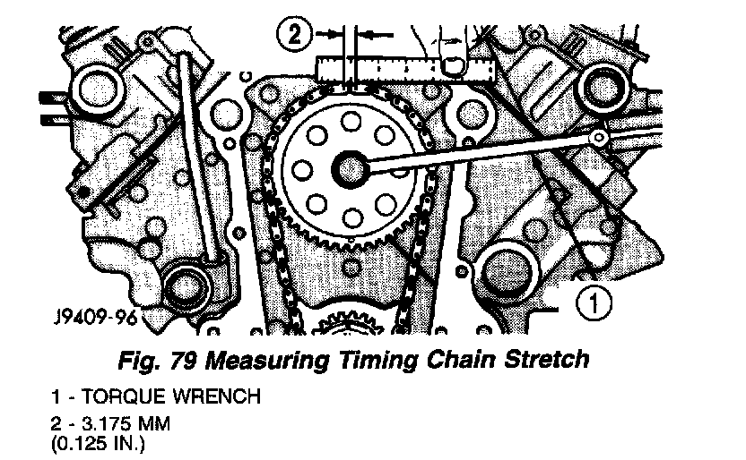4. Install a new timing chain, if its movement exceeds 3.175 mm (1/8 inch).
