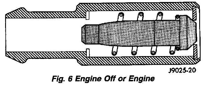 When the engine is not operating or during an engine pop-back, the spring forces the plunger back against the seat. This will prevent vapors from flowing through the valve.