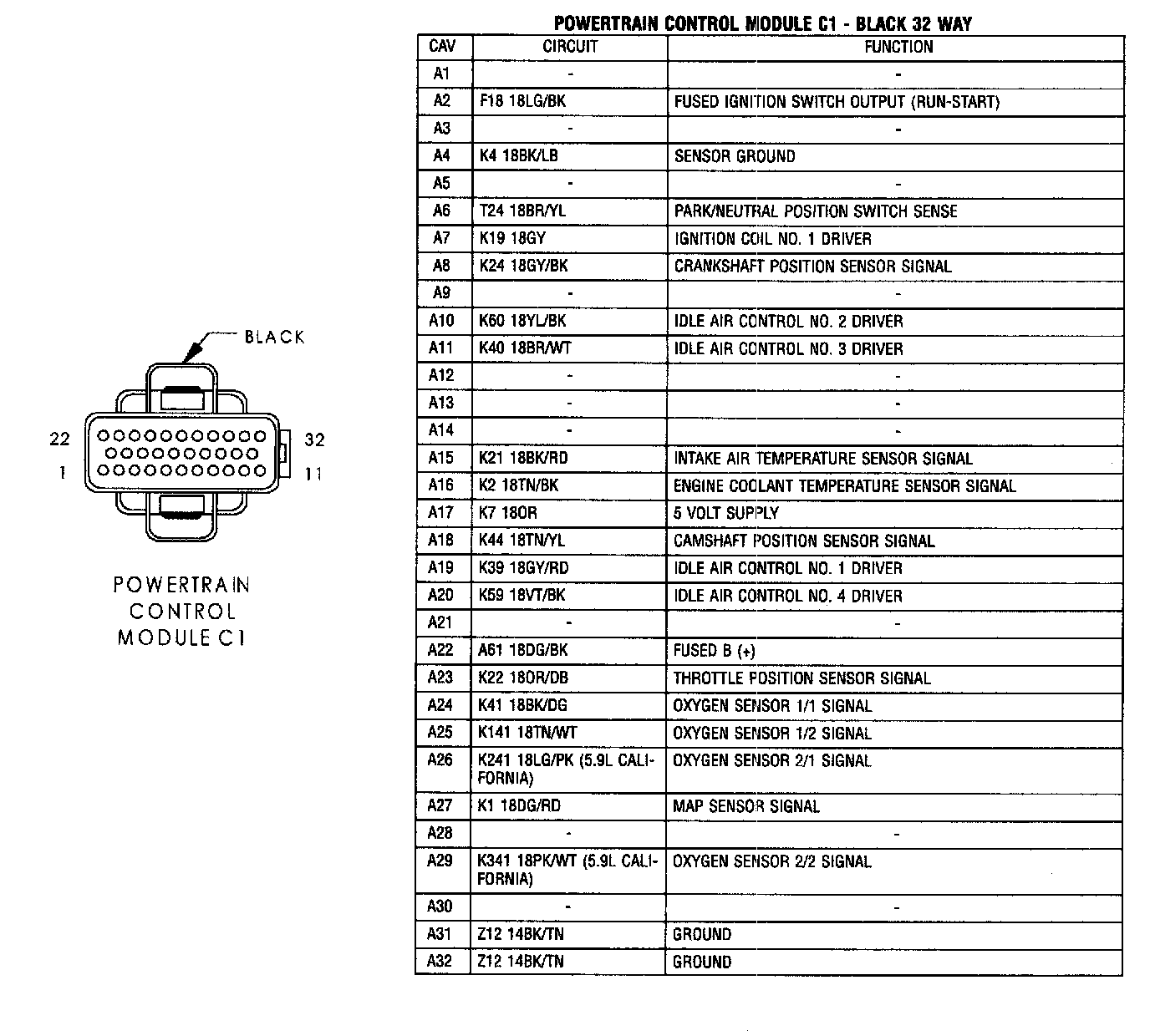 Powertrain Control Module C1: