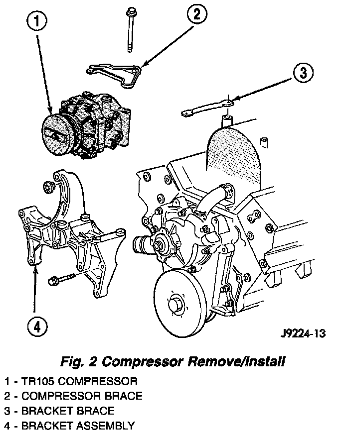 2. Position the compressor brace to the compressor and the engine intake manifold.
