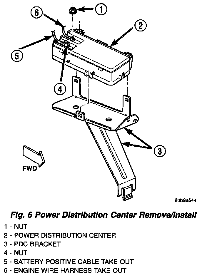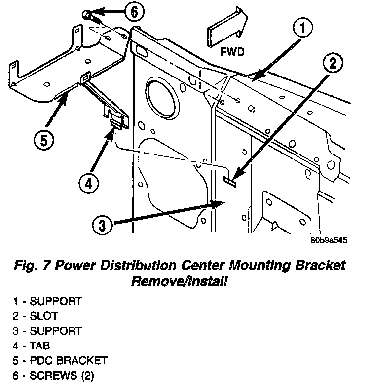 Fig. 7 Power Distribution Center Mounting Bracket Remove/Install: