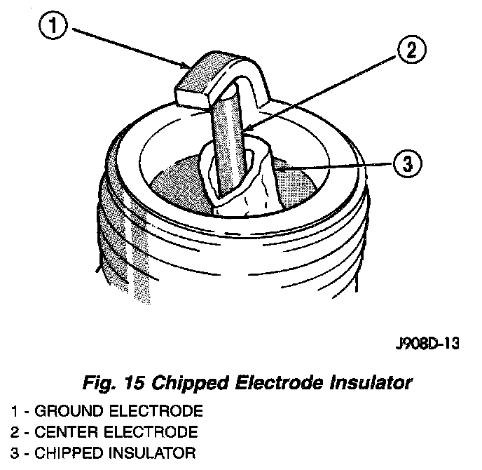 A chipped electrode insulator usually results from bending the center electrode while adjusting the spark plug electrode gap. Under certain conditions, severe detonation can also separate the insulator from the center electrode. Spark plugs with this condition must be replaced.