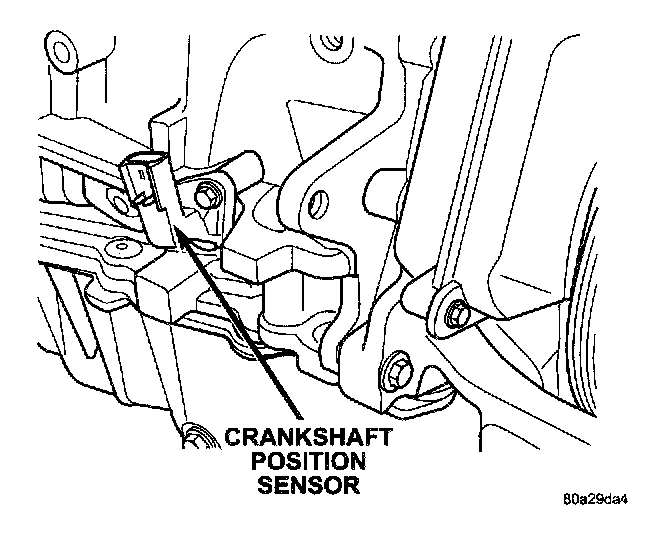 This crankshaft sensor is located on the rear of the engine near the accessory drive belt.