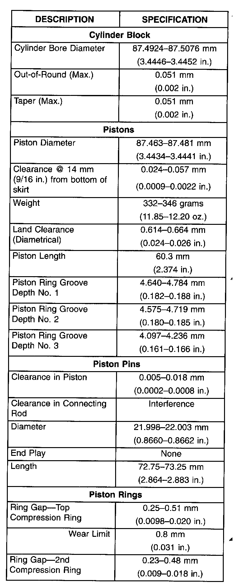 Complete Engine Specifications