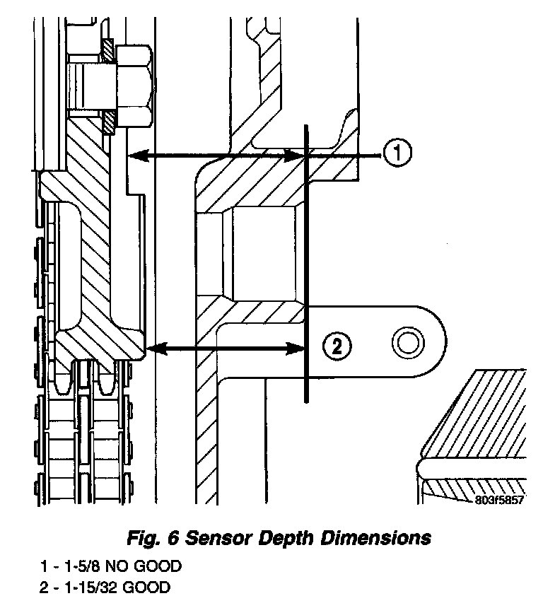 When installing a used camshaft position sensor, the sensor depth must be adjusted to prevent contact with the camshaft gear (sprocket).