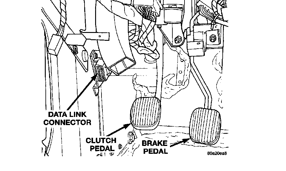 The data link connector is located inside the vehicle, below instrument panel to the left of the clutch pedal.
