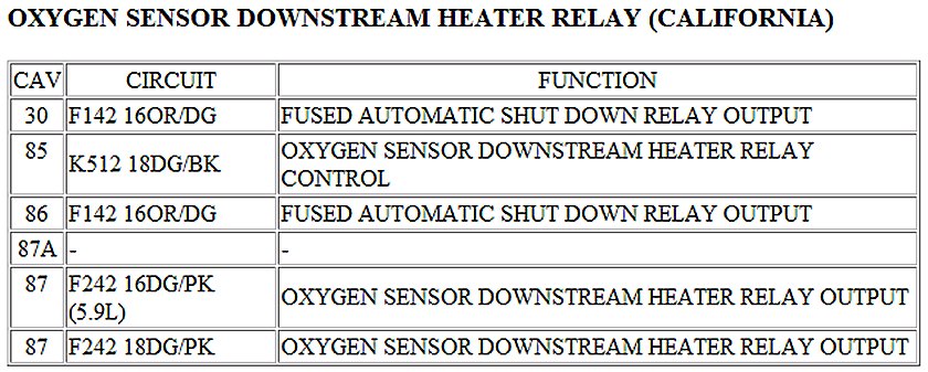 Oxygen Sensor Relay: Diagrams
