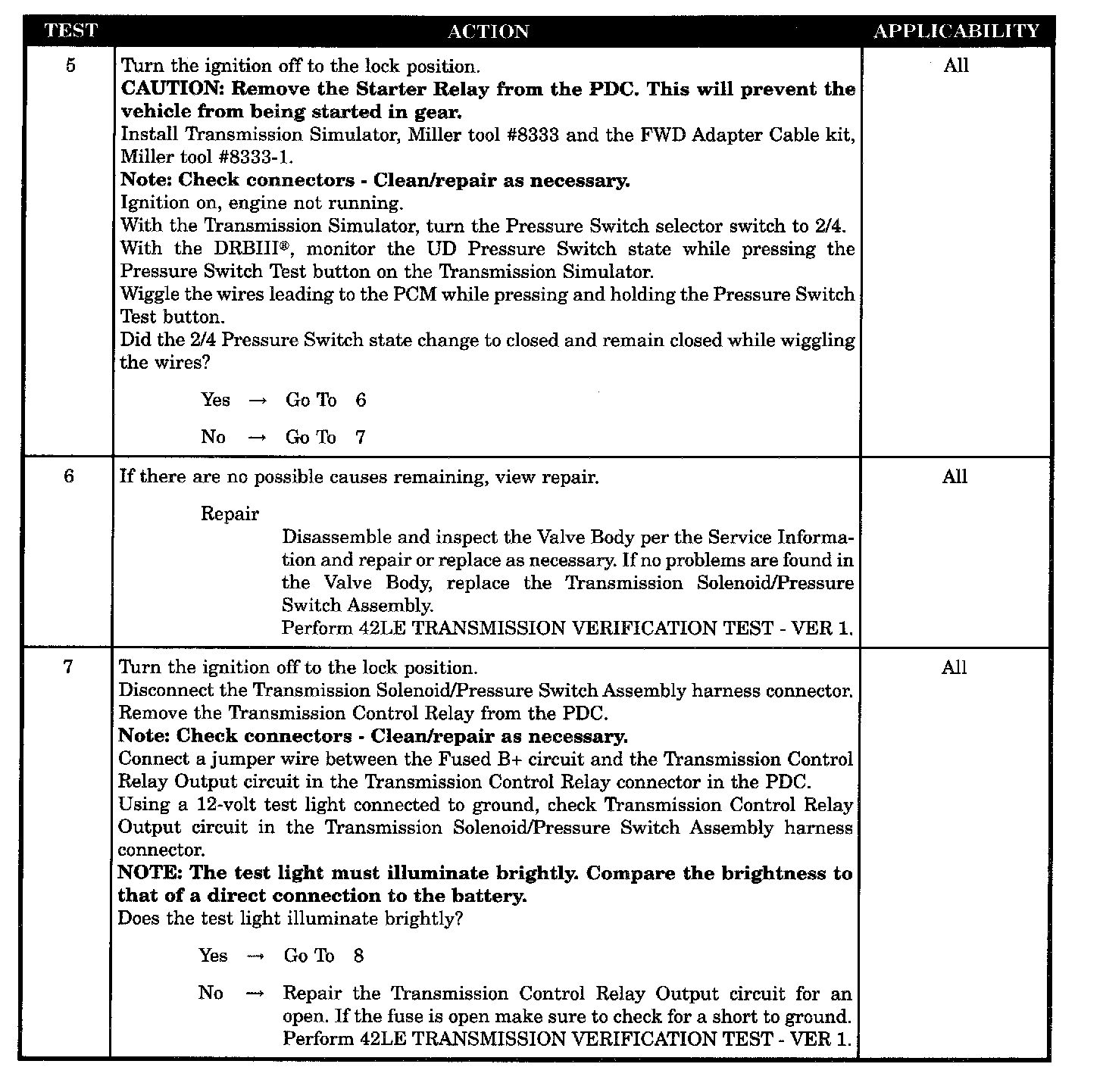 - Internal transmission - 2/4 hydraulic pressure test failure