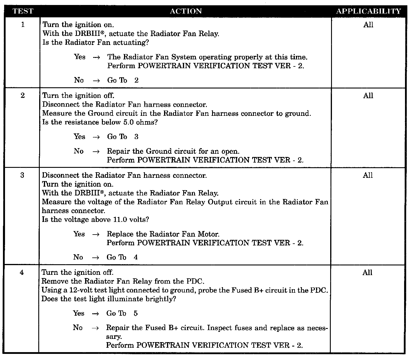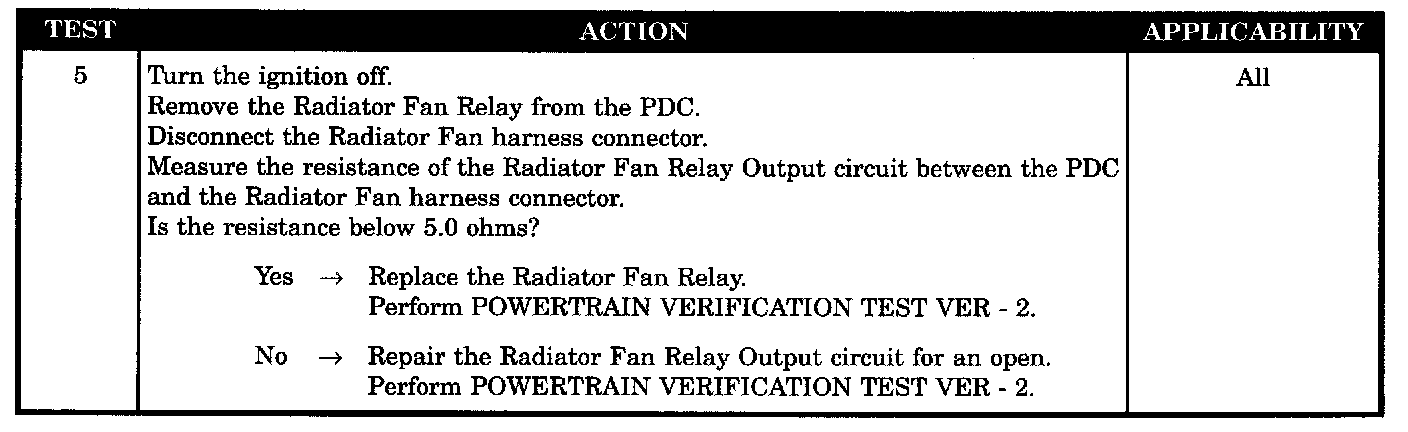CHECKING RADIATOR FAN RELAY OUTPUT