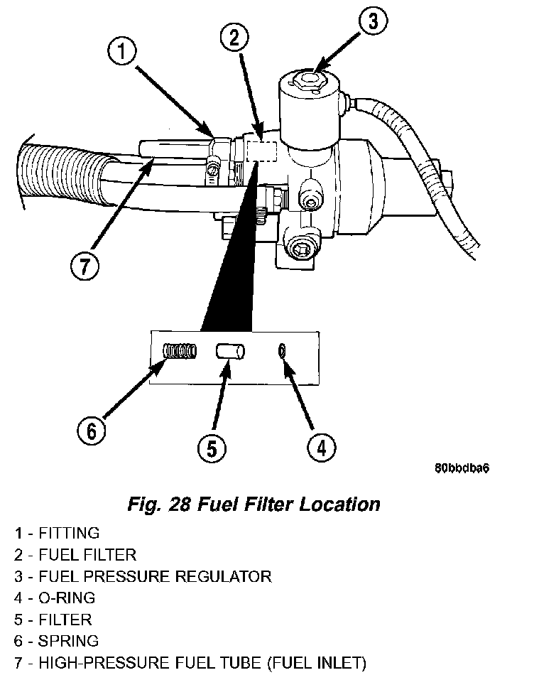 6. Remove filter retention spring, filter and O-ring (Fig. 28). Do not allow any foreign material to get into fuel pressure regulator opening.