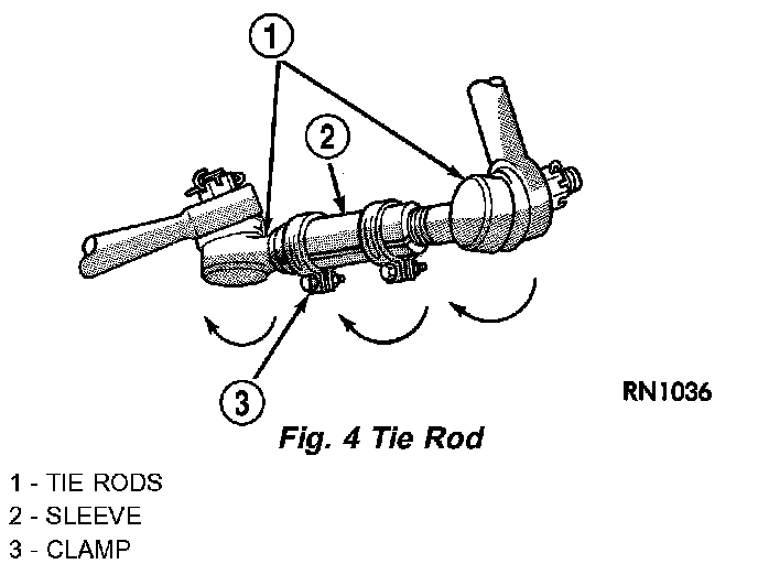 4. Position the adjustment sleeve clamps so the ends are not located at the sleeve slot. Tighten the tie rod sleeve clamps to:
