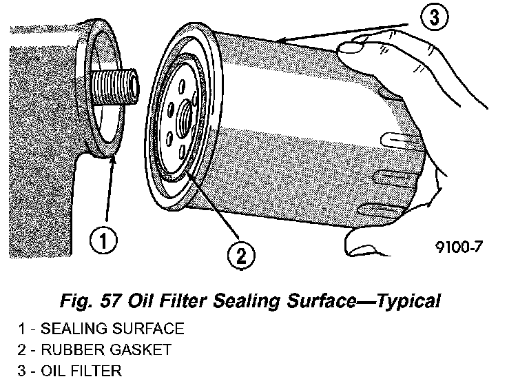 2. Thread filter onto adapter nipple. When gasket makes contact with sealing surface, (Fig. 57) hand tighten filter one full turn, do not over tighten.