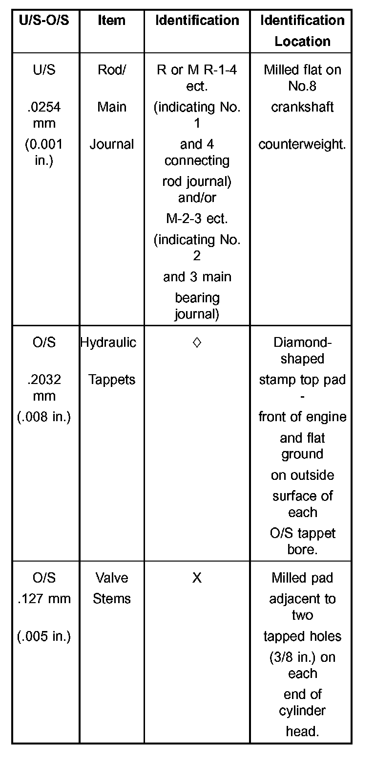 Oversize and Undersize Engine Component Marking Chart
