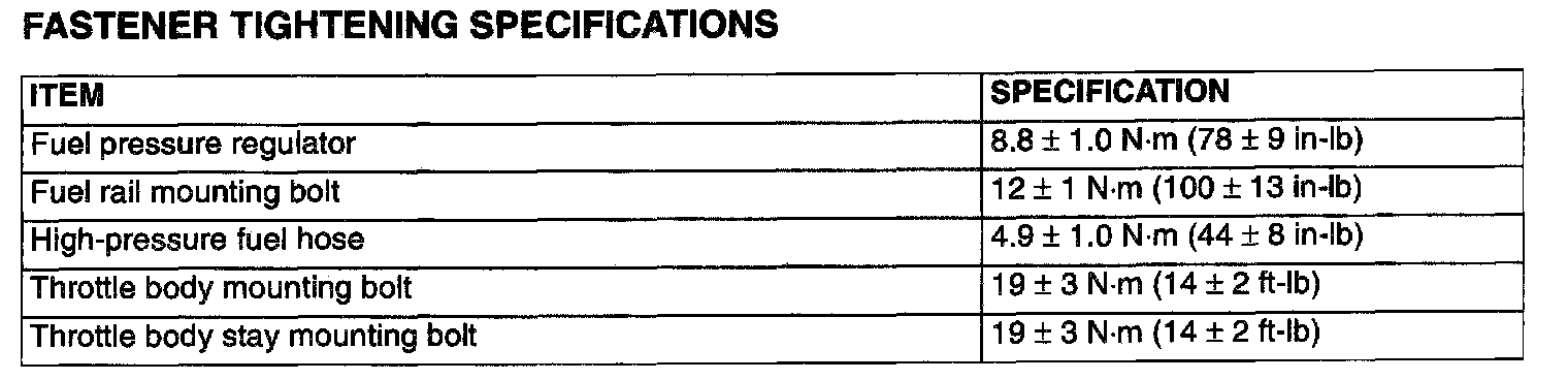 Fastener Tightening Specifications:
