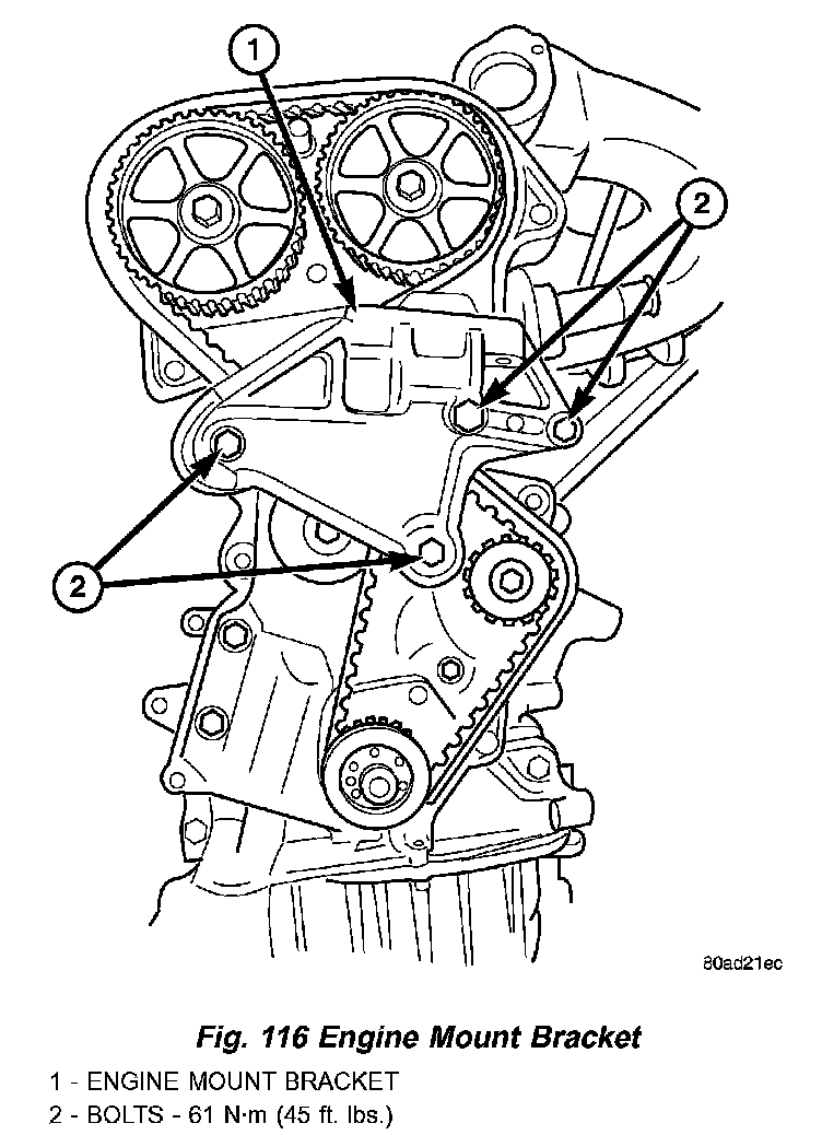 7. Install engine mount bracket to engine (Fig. 116).