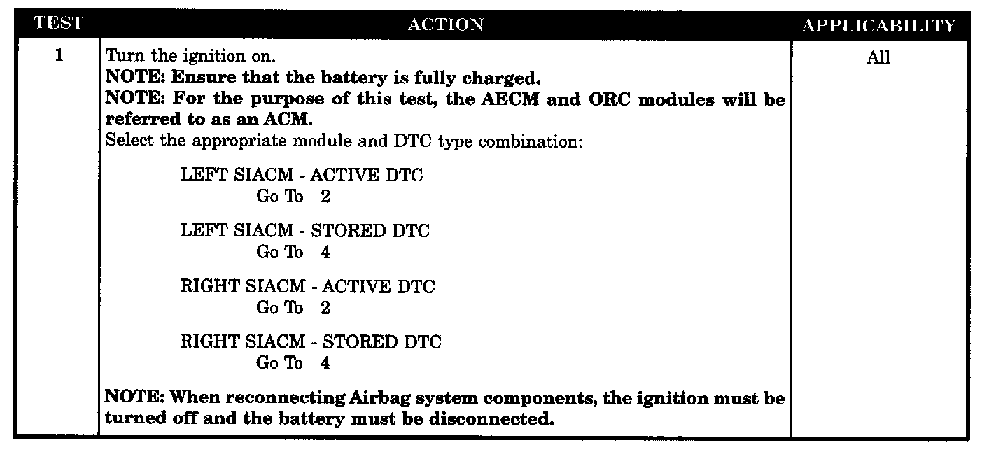 With the ignition on, the SIACM monitors the resistance of the Seat Squib circuits.