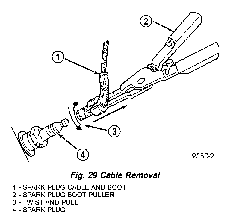 4. Except 4.7L: Always remove spark plug or ignition coil cables by grasping at the cable boot. Turn the cable boot 1/2 turn and pull straight back in a steady motion. Never pull directly on the cable. Internal damage to cable will result.