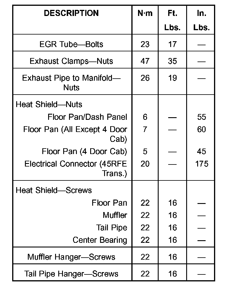 TORQUE SPECIFICATIONS